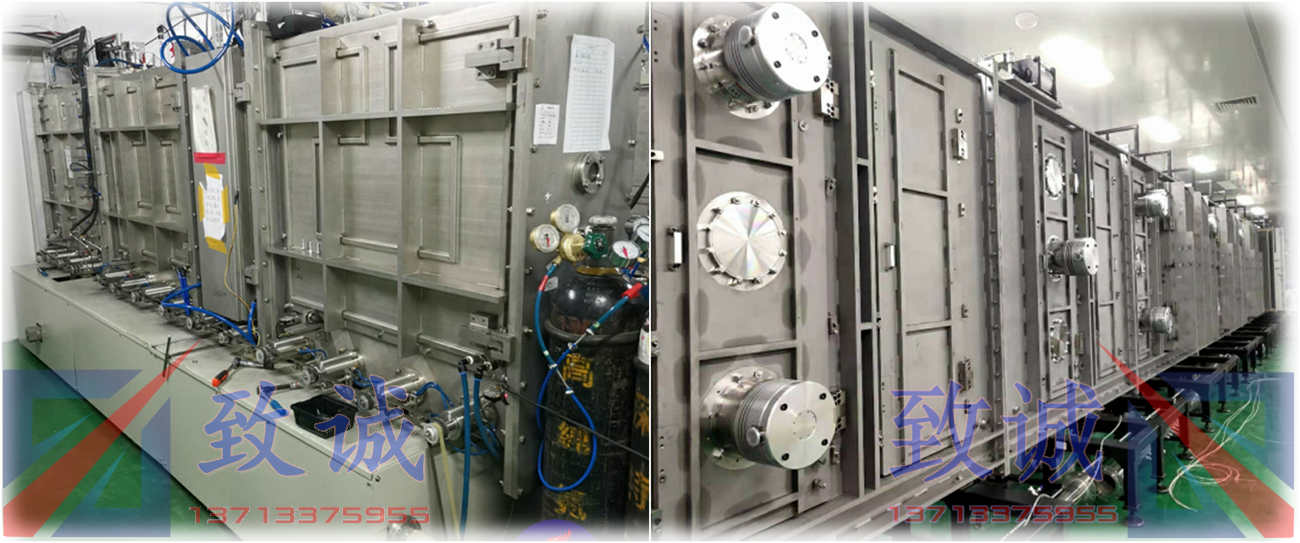 設計有七個真空腔體部分(fèn),第一部分為進口室,第(dì)二部分為進口緩衝室,第三部分為(wéi)進口傳送室(shì),第四部分為工藝室,第五部分為出口傳送室,第六部分(fèn)為出口緩衝室,第七部分為(wéi)出口室;生產線采用分子泵抽氣形成氣氛隔離的先進設計,生產線采用渦輪(lún)浮分子泵以獲得高效的隔離、穩定(dìng)的抽速和均勻的(de)氣體分布。