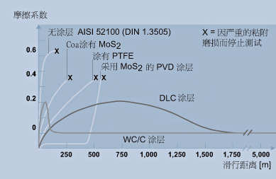 不(bú)同類型的類(lèi)金剛石塗層,具有不同的生產技術。DLC塗層適用於極端磨損情況和高相對速度,甚至是(shì)在無潤滑運轉的條件(jiàn)下使用,具有卓越的耐磨(mó)蝕性、抗摩擦氧化性和附(fù)著(zhe)性(防(fáng)磨損),可承受在正常條件下會立刻導致磨損和冷焊的表麵壓力,將摩擦損失(shī)降至最小,良好的耐腐蝕性使基體(tǐ)免受破壞性攻擊。