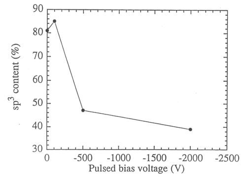 由於DLC屬亞穩態的材料,熱穩定性差是限製DLC膜應用的一(yī)個重要因素,在300℃以上退火時即出(chū)現了sp3鍵向sp2鍵轉變(biàn),為(wéi)此,人們進行了大量的工作試圖提高其熱(rè)穩定性。有研究發現:Si的加入可以明顯改善DLC膜(mó)的熱穩定性,含20 at%Si的DLC膜在740℃退火時才出現sp3鍵向sp2鍵轉變。同樣,金屬(如Ti、W、Cr)的摻入也可提高(gāo)DLC膜的熱穩定性。
